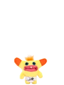 Features: Human-like tooth, wide eyes, baby diaper, tuft of hair