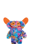 Features: Human-like teeth, slitted eyes, rounded felt orange ears